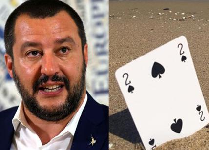 Così su Twitter il leader della Lega, Matteo Salvini, commenta i risultati elettorali pubblicando la foto di una carta del 2 di picche dentro la sabbia.