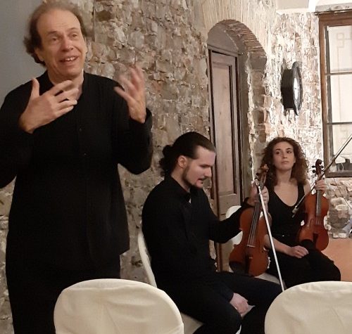 In copertina, il maestro Carlo Grandi durante il concerto a Villa Romano; all’interno, immagini della stessa serata e di quella di ieri nella scuderia di Savogna.