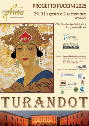 (g.l.) A Pozzuolo del Friuli è arrivata l’ora del debutto di “Turandot”. Oggi, domenica e martedì 2 settembre, alle 20, l’opera lirica di fama mondiale di Giacomo Puccini andrà, infatti, in scena nella cornice di Villa Gradenigo Sabbatini, con il contributo di Attivagiovani, il programma promosso dalla Regione Friuli Venezia Giulia che propone attività formative gratuite per giovani tra i 18 e i 35 anni. Grazie alla collaborazione con l’associazione Opera Prima-Wien, promotrice del progetto “Puccini 2025” – per rendere ancora omaggio, dopo il “Gianni Schicchi” del 2024, al centenario della morte del grande compositore di Torre del Lago -, i ragazzi e le ragazze di Attivagiovani hanno partecipato all’allestimento scenico dell’opera attraverso una serie di laboratori artistici che li hanno coinvolti, in particolare, nello sviluppo di buona parte delle scenografie e dei bozzetti per i costumi e nella preparazione di alcune comparse e di elementi dell’orchestra.