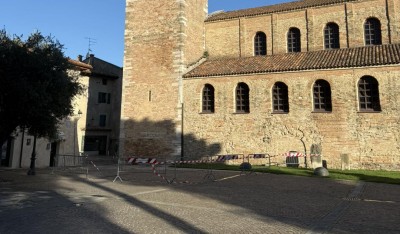 (g.l.) Avrà una sorpresa, non proprio piacevole, chi stamane si recherà a Messa nella Basilica di Grado o semplicemente si troverà a passare per Campo dei Patriarchi e Campo Patriarca Elia, il sagrato del massimo Tempio cittadino. Vedrà, infatti, transennato per motivi di sicurezza lo storico campanile dell’Anzolo segnavento, in seguito a un immediato intervento, nella giornata di ieri, dei Vigili del Fuoco. A darne notizia è stata la stessa Parrocchia di Sant’Eufemia, attraverso un comunicato appena diramato agli organi di informazione dall’arciprete Paolo Nutarelli.
