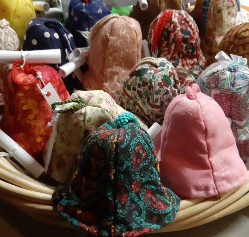In copertina, le originali campanelline di stoffa create da Donata Gervasi ed esposte sul bancone della pesca di beneficenza.