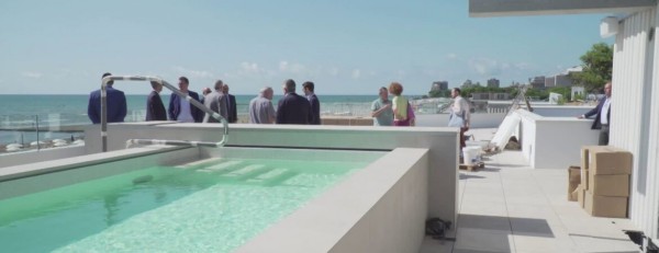 Nel dettaglio, questo secondo lotto, avviato nel settembre 2024 e completato un anno dopo, ha trasformato il piano superiore della struttura – che si presentava ancora “al grezzo” – in un moderno spazio per benessere e tempo libero, con area fitness, zona beauty e una nuova Spa. A lavori ultimati, la Spa risulterà dotata di sauna, bagno turco salino, stanza relax con parete di sale, docce emozionali, fontana di ghiaccio e terrazza panoramica con piscina idromassaggio vista laguna. Quest’ultima sarà raggiungibile, oltre che dai percorsi interni, anche da due scale di sicurezza esterne e da un ascensore panoramico e avrà un’area destinata a bar, complementare ai servizi di ristorazione già presenti in spiaggia. L’intervento ha incluso nuove scale, ascensori, lavori alla copertura e finiture di pregio, oltre a impianti tecnologici avanzati e un impianto fotovoltaico per la sostenibilità.