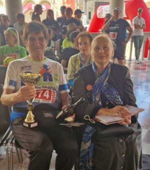 Non ha più la verde età, ma alla Maratonina non sa rinunciare. Ecco Giuliano Gemo, socio del Club per l’Unesco di Udine con delega allo sport, durante le premiazioni con il sindaco Alberto Felice De Toni e la presidente Renata Capria D’Aronco. Tanti i complimenti per Giuliano il “maratoneta”. Anche quello di friulivg.it