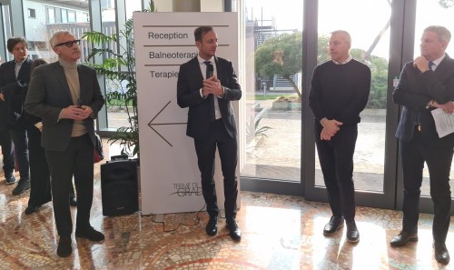 «Le nuove Terme – ha aggiunto il governatore – sono parte di un percorso, che porteremo avanti con il Comune e con gli operatori, di riqualificazione anche dell’intera area del retrospiaggia, cruciale per Grado. Con la consapevolezza che dobbiamo cominciare a costruire i prossimi decenni: se non siamo in grado di offrire sempre qualcosa di più, di ammodernarci e rinnovarci nell’ambito dell’offerta turistica, rischiamo che anche località di straordinaria eccellenza come Grado possano, nel lungo periodo, essere penalizzate. Questo non ce lo possiamo permettere: dobbiamo continuare a investire su Grado e continuare a crederci, come testimonia l’opera che inauguriamo oggi che apre un percorso di grande prospettiva».