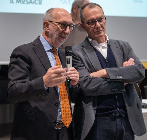 In copertina, l’assessore regionale Riccardi con il presidente Fontana; all’interno, un’immagine del workshop di Udine e ancora del responsabile del Mosaico.
