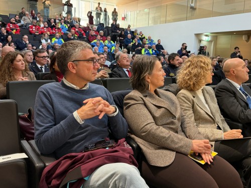 Poi l’assessore ha citato il grande ruolo dell’Università, nata da «un movimento popolare positivo» per formare una classe dirigente capace di gestire la «cultura della resilienza», il riscatto di un popolo e la trasformazione, nelle due presidenze Comelli e Biasutti, di una regione che da confine dell’Italia e dell’Europa è diventata cuore dell’Europa, pensando non soltanto alla ricostruzione ma alla ricostruzione e allo sviluppo «come ci ricordava sempre un grande friulano come Mario Toros». E poi la Protezione civile, «cioè lo sforzo con il quale Giuseppe Zamberletti ci ha insegnato che bisogna pensare a quello che può succedere dopo e prima. Quindi l’attività della prevenzione, con la grande lezione del ricostruire quello che era, dove era. C’è un passaggio estremamente importante del presidente Adriano Biasutti e del presidente Antonio Comelli che verrà ricordato – ha rimarcato Riccardi -: la scelta di ricostruire “dov’era e com’era” non è stata un semplice calcolo algebrico sui costi, ma una straordinaria lezione di civiltà: la vera convenienza di quella scelta risiedeva nella volontà ferrea di difendere le radici profonde di questa terra».