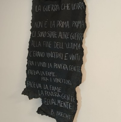 Ma non manca neppure l’appoggio del Centro friulano arti plastiche di Udine. Va detto, infatti, che con il sodalizio artistico guidato dall’architetto Bernardino Pittino – figlio del grande artista che nei primi anni Sessanta, in occasione del generale restauro, disegnò il grande mosaico absidale dell’antica Pieve di Nimis – Adriana Bassi ha grande familiarità. Tanto che la scorsa estate aveva partecipato a una bellissima collettiva intonata al tema della pace, sempre più d’attualità in questi tempi carichi di tensioni e di incertezze. Il Cfap aveva così proposto un Ferragosto d’arte per la pace, proponendo una mega-installazione a più voci, nella quale, oltre ad Adriana Bassi e allo stesso Pittino, era presente la mano degli artisti Marisa Cignolini, Silvano Castellan, Paolo Dreossi, Cristina Franzil, Catia Maria Liani e Luigi Loppi. Tutti concordi nel fare riflettere il visitatore sulla orribile situazione della guerra, in particolare di quelle in atto in Ucraina e in Medio Oriente, e in particolare sulla tragedia di Gaza. Installazione arricchita anche da testi poetici intonati con l’intensa tematica e la parola “pace” declinata in ben 150 lingue, ma anche dalla proiezione di video molto toccanti e nei quali il sangue era purtroppo il primo, tristissimo protagonista.