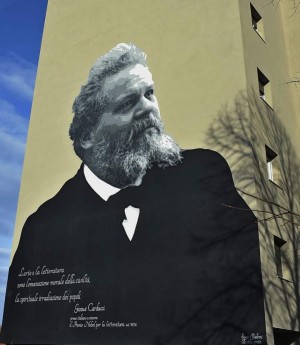 In copertina, il murale con Alda Merini; all’interno, la presidente Vanessa Colosetti con il direttore Lorenzo Puzzi, le raffigurazioni di Giosuè Carducci, Giovanni Guareschi e Federico Tavan.