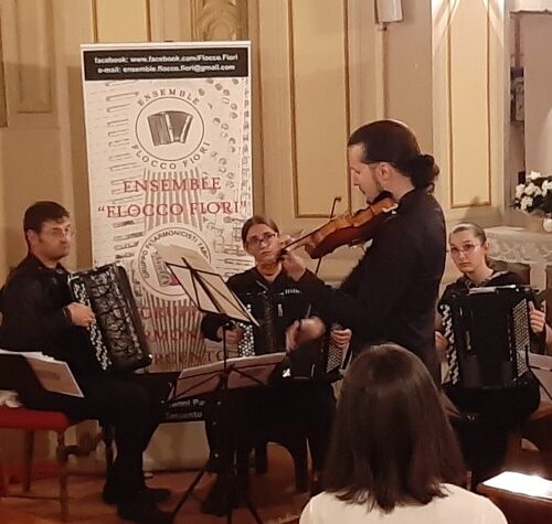 Intanto, fra i numerosi impegni legati proprio all’Ensemble Flocco Fiori, Massimo Pividori ha ritagliato anche il tempo necessario per lavorare a un importante progetto musicale legato alla serata commemorativa che si terrà il 6 maggio prossimo, 50° anniversario del terremoto del Friuli, al Teatro Juventus di Nimis con la regia di Dino Persello, l’artista sandanielese applaudito ieri sera anche ad Amaro in Carnia. In quell’occasione, in duo con il violinista Daniel Longo, laureato proprio al Conservatorio di Trieste, presenterà una serie di brani intonati alla particolare circostanza e che intercaleranno gli interventi degli attori della Compagnia “La Beorcje” diretta da Carla Monai, i quali apriranno lo spettacolo ricordando, con una lettura teatralizzata, il sisma come era stato descritto in un libro che il giornalista Giuseppe Longo (testi) e il compianto fotografo Bruno Fabretti (immagini) realizzarono quarant’anni fa nel decennale della tragedia che colpì il Friuli e la stessa Nimis.