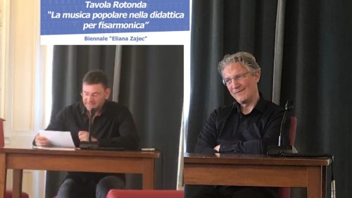 C’era anche il maestro Massimo Pividori, direttore artistico dell’Ensemble Flocco Fiori, tra gli applauditi relatori della tavola rotonda dal titolo “La musica popolare nella didattica per fisarmonica” che si è tenuta ieri pomeriggio al Conservatorio “Giuseppe Tartini” di Trieste. Lo strumentista di Nimis, che da tanti anni è alla guida del Gruppo Fisarmonicisti Tarcento, ha presentato un’interessante relazione in cui ha analizzato il ruolo del popolare mantice nei momenti folcloristici legati alle tradizioni della vita comunitaria, ma anche la sua duttilità per la esecuzione di brani di musica classica o colta opportunamente adattati. L’incontro, che ha visto l’alternarsi al microfono di vari esperti moderati dal professor Corrado Rojac, dello stesso “Tartini”, è stato concluso da un concerto molto apprezzato con l’esibizione di alcuni giovanissimi musicisti, fra i quali c’era anche Gianni Passon, allievo dello stesso Pividori a Tarcento.